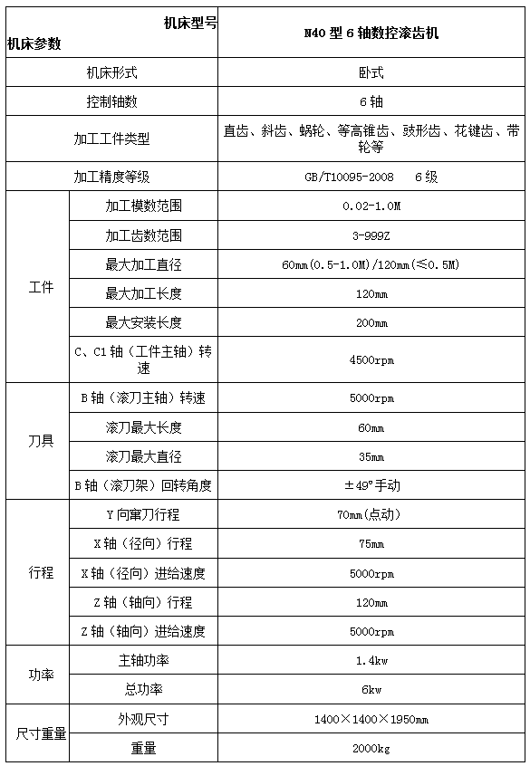 * N40 6軸數控滾齒機配備了Higerman(或(huò)SIEMENS 828D)6軸數控係統,可以通(tōng)過展成或分度方(fāng)式加工齒軸、小齒輪(直齒、斜(xié)齒、錐齒等(děng))。